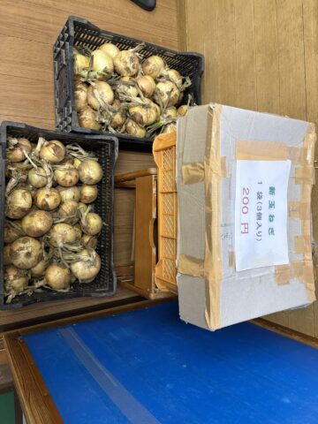 この時期の新玉ねぎは本当に甘くて美味しいです。地域の方々は毎年この新玉ねぎを楽しみにしていただいておりまして、4月13日(月)だけで50個ほど売れてしまいました。